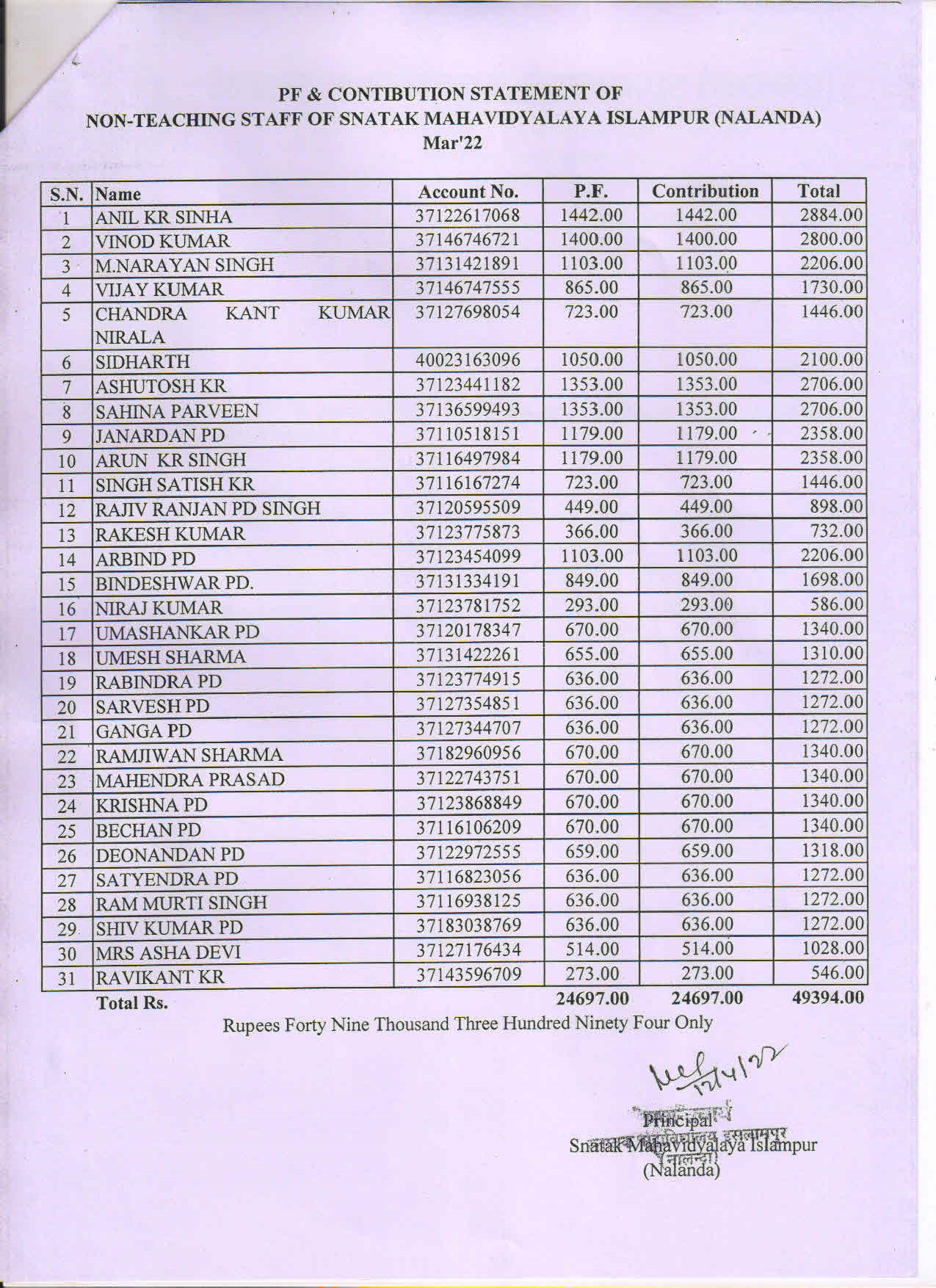 PF Non-Teaching